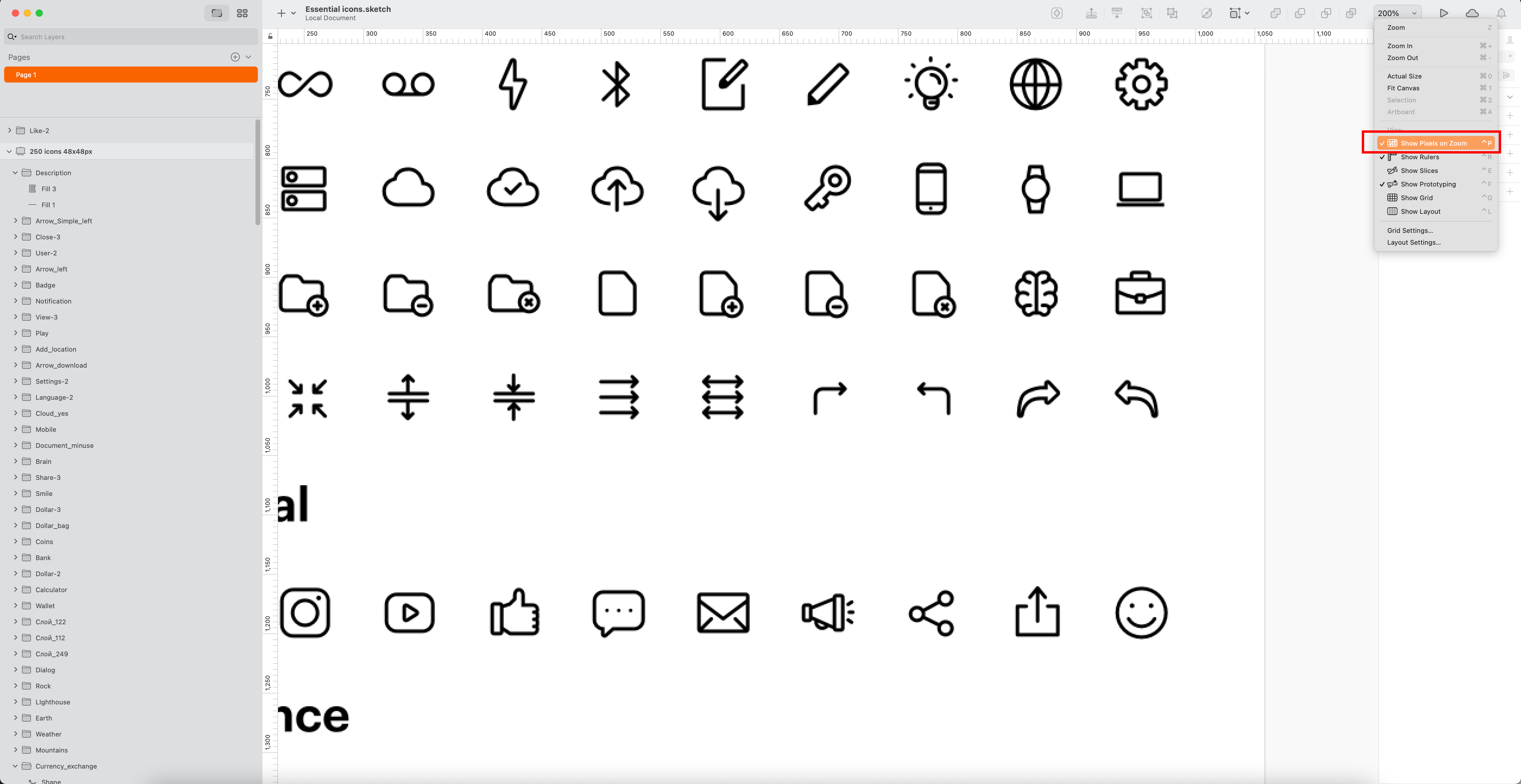 그 중 show pixels on zoom 이 체크되어 있는데 클릭하여 체크를 해지하면 확대해도 깨지지 않는 시안을 확인 할 수 있다.