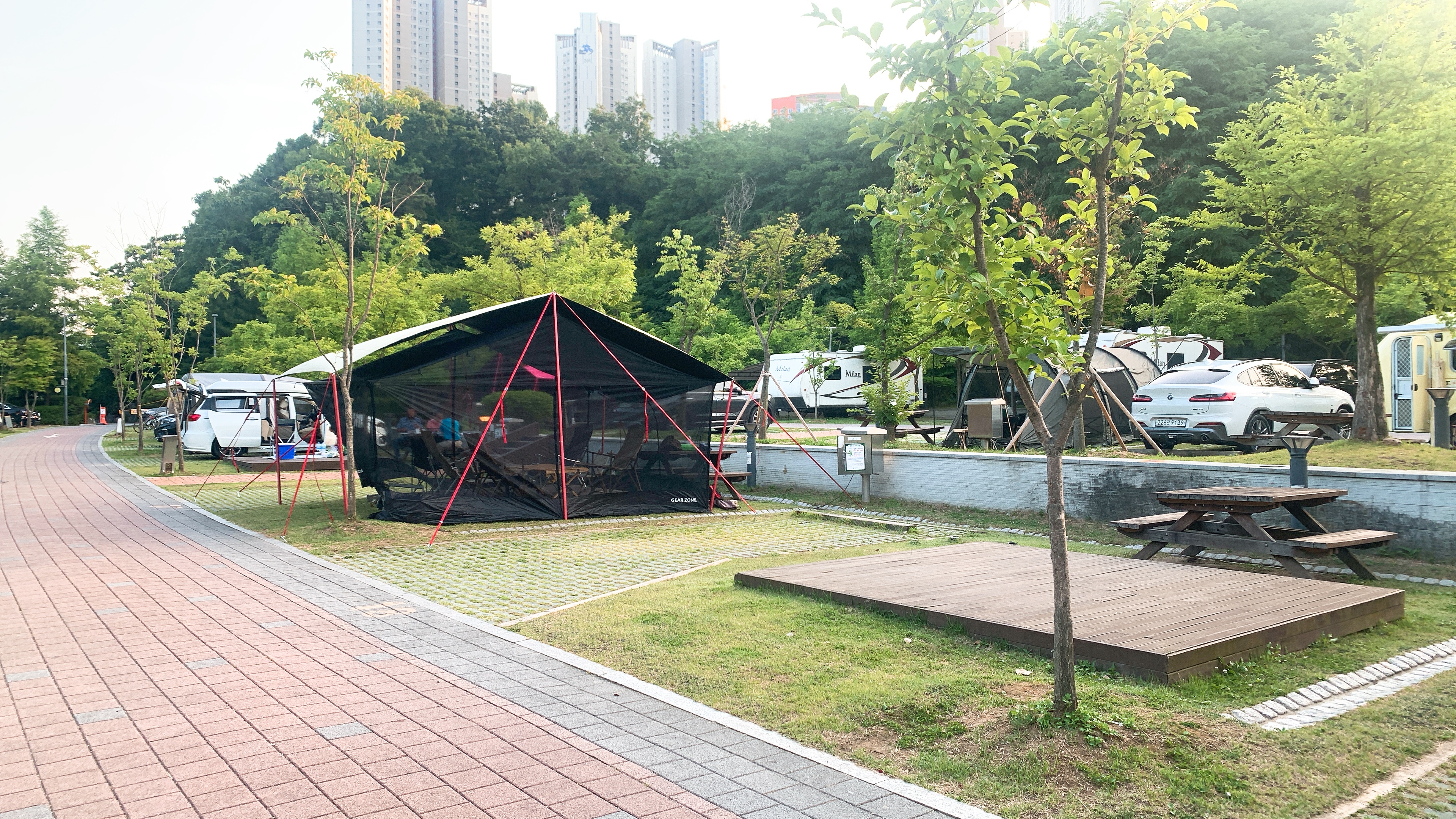 도심에 있는 캠핑장이기에 가까워서 좋지만 아파트도 많이 보이고, 도로옆이라