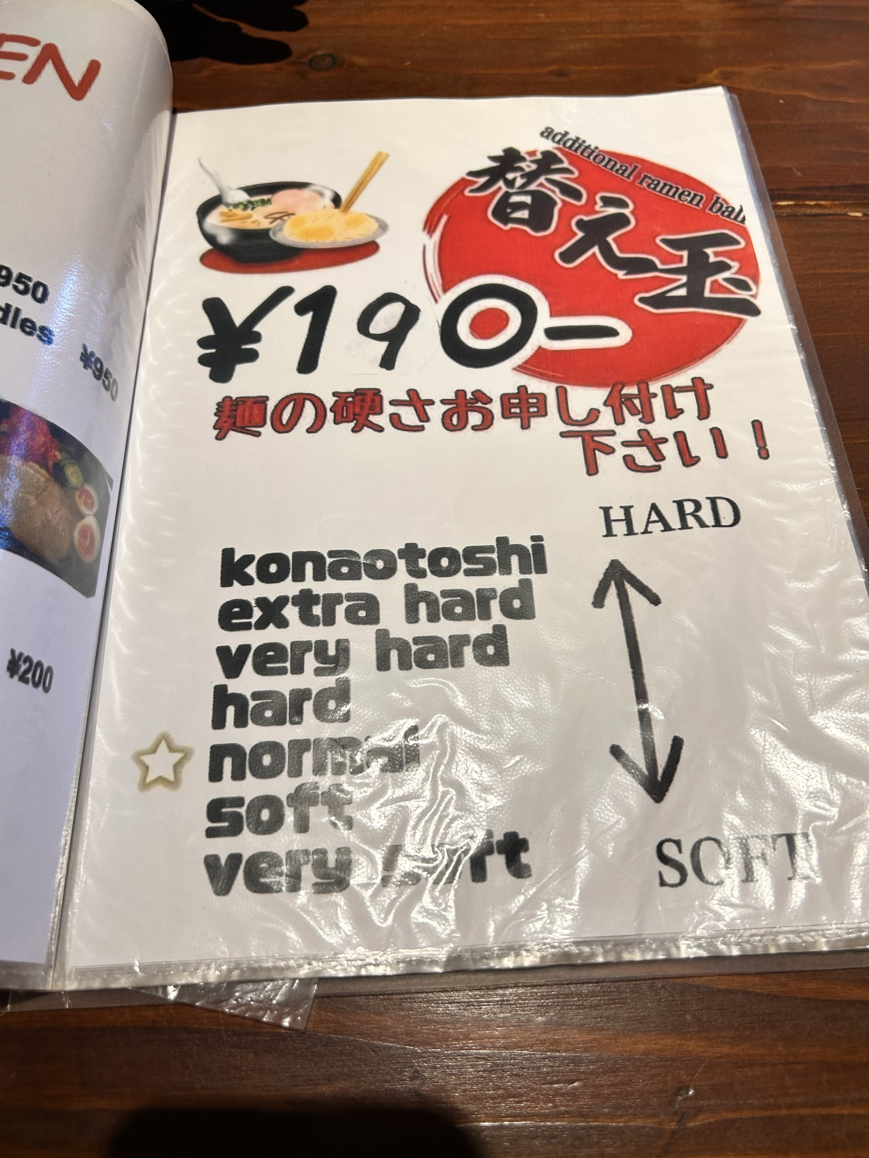 라멘 면 굵기를 선택할 수 있었고,